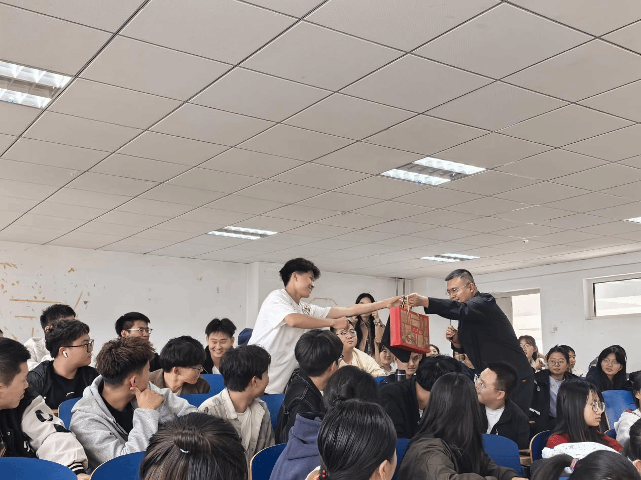 在企业导师与同学们的互动环节,赵总贴心地准备了节日礼物,展开热烈的现场互动,新生们积极提问,企业导师耐心解答,让同学们在新环境中深切感受到专业学习的温度、企业导师的关怀与未来发展的期待。