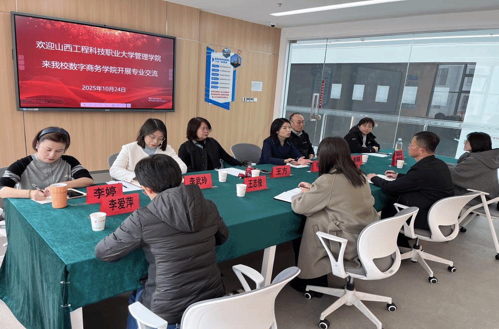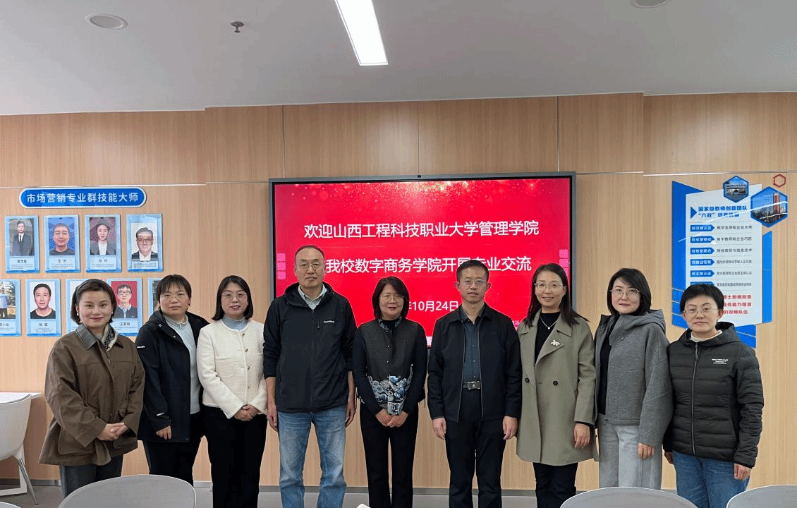 为了解我省“双高”院校办学经验、专业特色和人才培养模式,2025年10月24日下午2点30,在管理学院李耀东副院长(主持工作)的带领下,副院长王志俊、系主任秦晓芳、市场营销教研室主任李爱萍一行四人赴山西省财政税务专科学校数字商务学院调研学习。