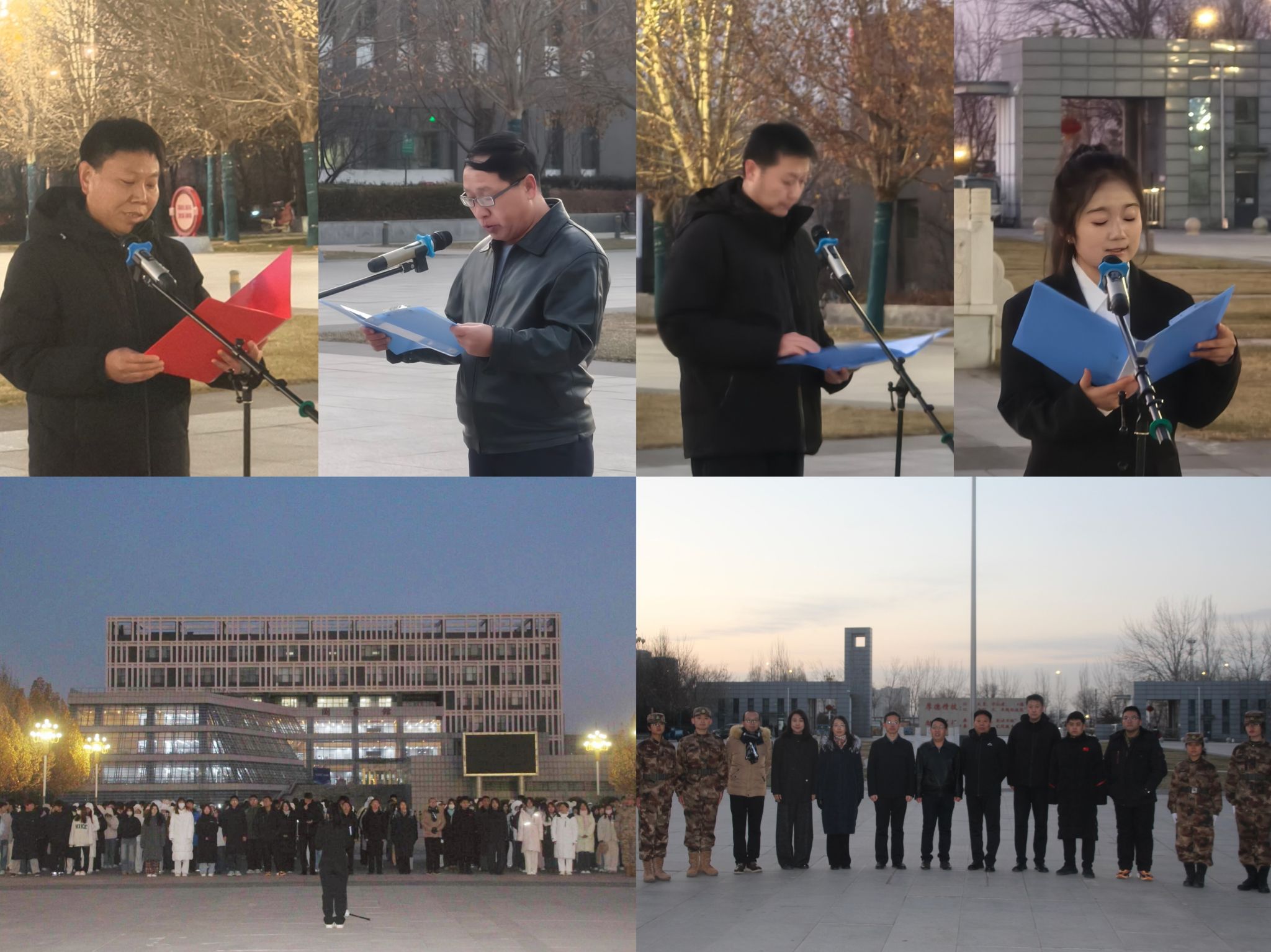 为深切缅怀“一二·九”运动九十周年的历史功绩,大力弘扬爱国主义精神,激励全院师生传承红色基因、勇担时代使命,将爱国情怀融入校园文化,传递奋进正能量,管理学院于2025年12月8日7:00在同心广场举行了纪念“一二·九”运动升旗仪式。参加本次升旗仪式的有学院领导班子成员、学工办主任、分团委书记、全体专职辅导员和2025级全体学生以及管理学院团学组织代表。升旗仪式由管理学院党委副书记赵晋阳主持。
