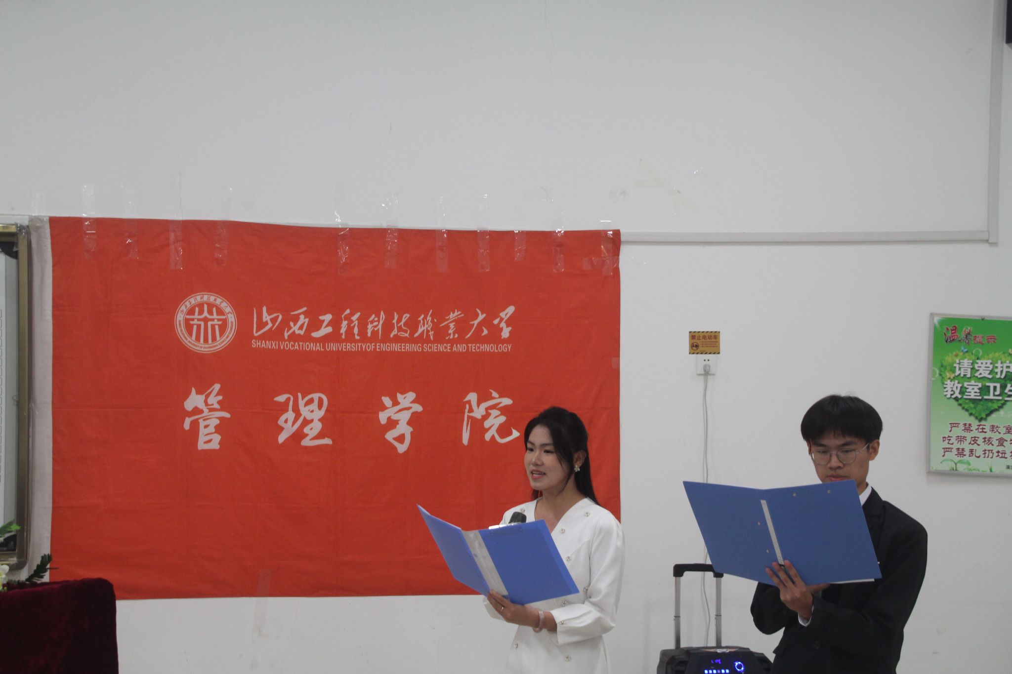 会议伊始,全体师生起立,奏唱国歌。接着,管理学院学工办负责人高振华老师宣读《管理学院学生考风考纪管理办法》,通过高振华老师的宣读同学们深刻认识到了端正考风,严肃考纪的重要性。紧接着,管理学院学生会主席团成员马悦同学宣读《诚信考试倡议书》,让同学们对诚信考试的信念更加深刻,积极主动自觉成为诚信应考中的一员。随后,学生党员代表任奕蓉同学发言,提出严禁考试作弊是为了确保教育的公平性和公正性,保护学生的长远发展,维护社会的道德和法律秩序以及提高同学们的自觉性和自律性。而后,学生干部代表韩习昆同学发言,指出诚信考试是对个人道德品质的考验,有助于培养自律意识和责任感。通过诚信考试,考生能够真实地反映其学习成果,促进他们成长和未来的职业发展。之后,管理学院团委书记苗峰老师和学工办主任高振华老师为学生代表佩戴诚信考试监督卡。然后,由管理学院学生会执行主席聂云辉同学带领全体同学进行诚信应考宣誓,更加振奋了同学们诚信考试的信心。最后,管理学院党委副书记赵晋阳作总结发言,他指出考场是诚信的试炼场,严守考试纪律,是诚信考试的第一要求。并提出了三点要求:1、各班级要迅速召开诚信应考主题班会,通过签署诚信应考承诺书、班级宣誓等形式,唤醒同学们的诚信意识,收心集中备考复习;2、各班级要发挥学习标兵、学习小组的优势,组织开展期末复习和学业帮扶,将功夫用在复习备考上;3、各位学生骨干、学生党员要以上率下、以身作则,共同营造诚信考试之风。至此,本次大会圆满结束。